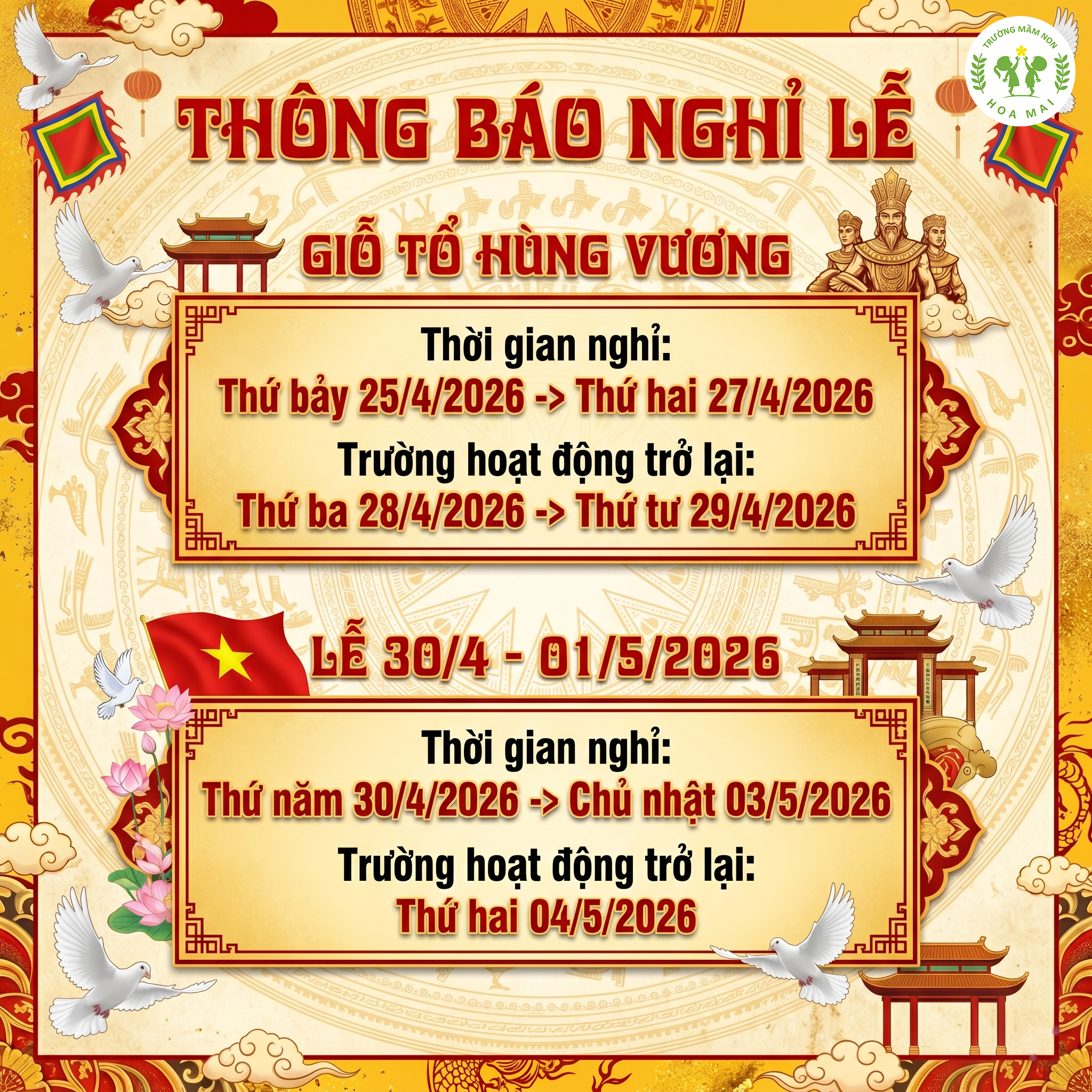 THÔNG BÁO NGHỈ LỄ GIỖ TỔ HÙNG VƯƠNG VÀ LỄ 30/4-01/5/2026